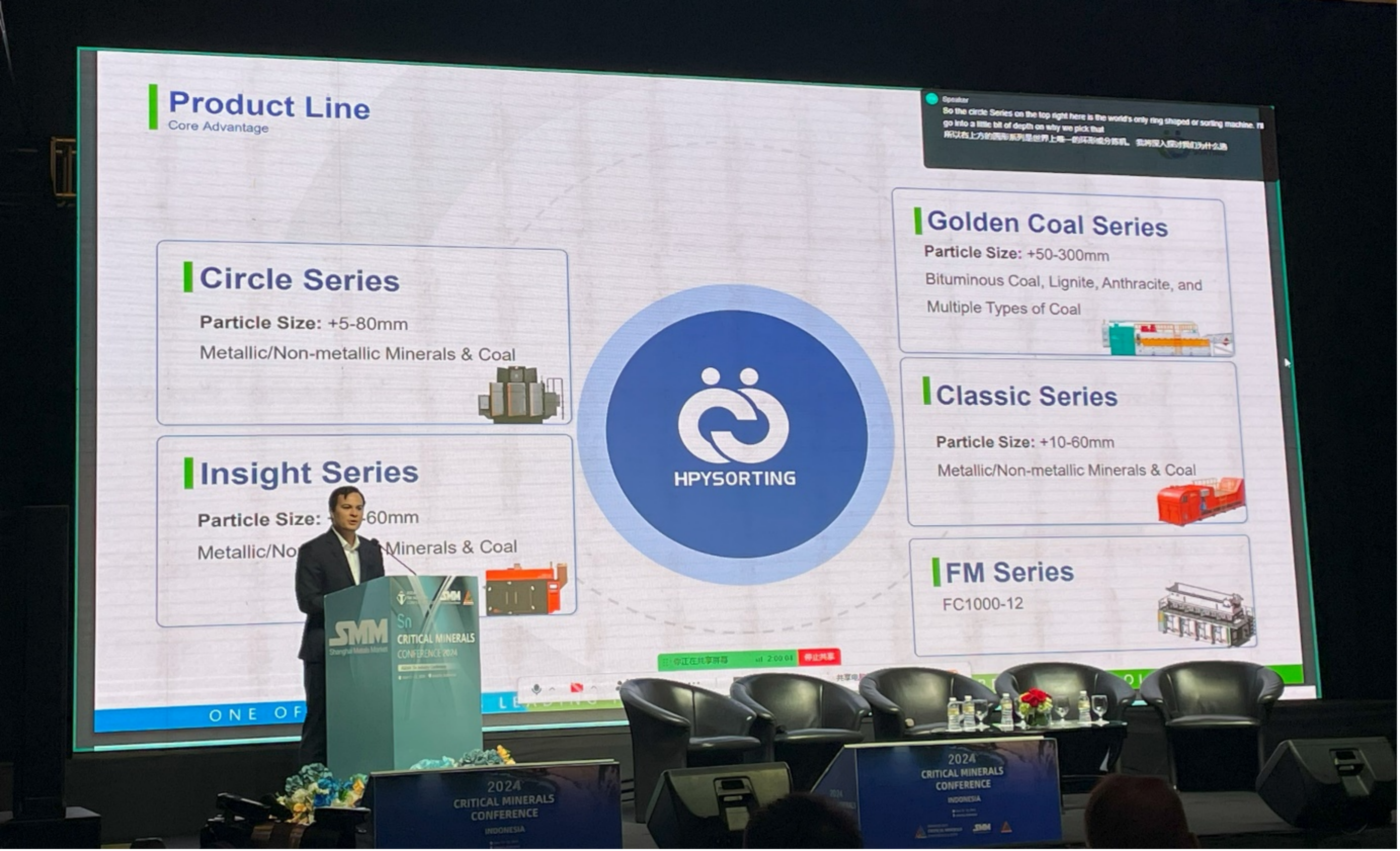 Jakarta, June 11-13, 2024 - In light of the mining sector transitioning to cleaner energy, HPY’s Overseas Market Manager, Jason Tatman, was invited to the Indonesia Critical Minerals Conference & Expo 2024 as one of the key speakers for the ASEAN Tin Industry Conference. He highlighted how HPY’s innovative ore sorting technology could enhance efficiency and sustainability in tin and other mining operations.